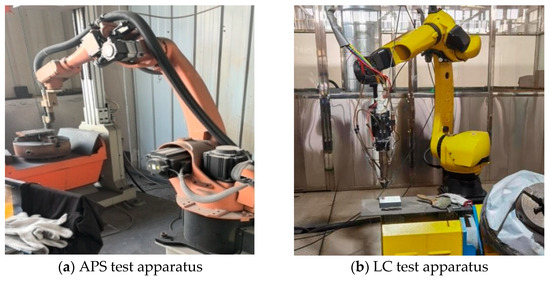 The substrate used for atmospheric plasma spraying (APS) was 304 stainless steel with dimensions of 140 × 30 × 6 mm3. The surface was first cleaned with acetone to remove any oil contamination, followed by sandblasting to roughen the surface. Subsequently, sandblasting was performed using 120-mesh (0.125 mm) brown corundum sand, with a blasting pressure of 0.4 MPa and a nozzle-to-substrate distance of 80–100 mm. Finally, the substrate is washed with anhydrous ethanol to remove surface impurities. For laser cladding, 316 stainless steel was selected as the substrate, with dimensions of 100 × 100 × 40 mm3. The pretreatment process for the 316 stainless steel substrate was identical to that used for the APS-treated substrate. A comparison of the chemical compositions of the two substrates is provided in Table 2.