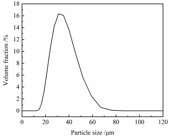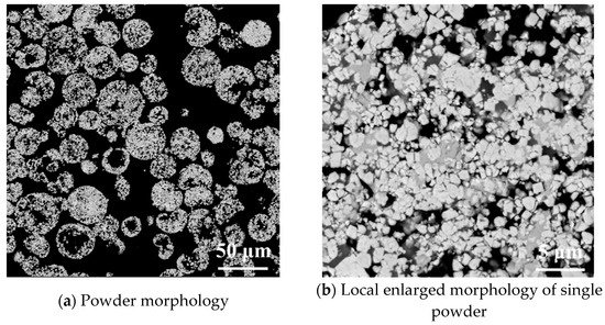 The powder used in this experiment was WC-10Co-4Cr powder, specifically designed for coatings and supplied by Praxair. The chemical composition of the powder is shown in Table 1. The powder has a particle size range of 18–45 μm, a flowability of 12.8 s·50 g−1, a loose bulk density of 5.7 g·cm−3, a specific heat capacity of 502 J·kg−1·K−1, a thermal conductivity of 75 W·m−1·K−1, and a density of 6000 kg·m−3. To enhance the flowability of the WC-10Co-4Cr hard alloy powder, a pretreatment process was conducted. The powder was placed in a drying oven at 100 °C for 30 min to ensure it remained dry. After cooling, it was sieved to ensure uniform particle size distribution.
