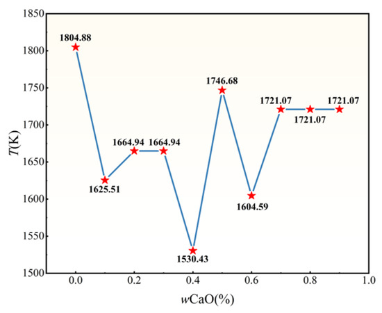 3.1.2. Analysis of the Melting Point of the Slag Phase at Different Calcium Oxide Contents