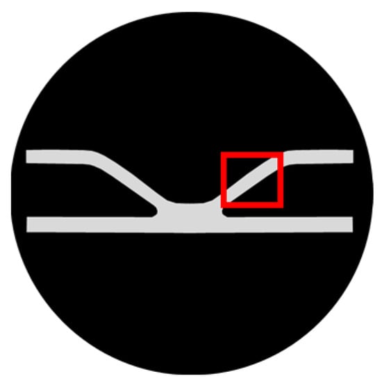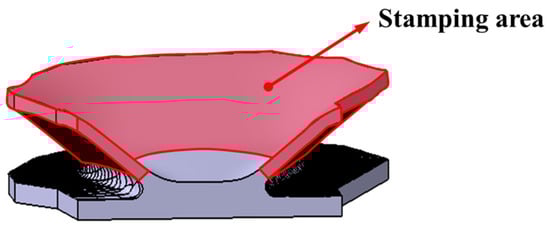 EBSD testing technology is used to conduct microstructure analysis on the studied stamping area. The cut sample was heat-embedded, and then the surface of the embedded sample was carefully polished to obtain a flat and smooth surface to ensure its suitability for electron beam irradiation. The samples were sequentially polished with 800-, 1200-, and 2000-grit sandpapers, followed by diamond polishing solutions of 3 μm, 1 μm, and 0.25 μm. Finally, 0.05 μm aluminum oxide was applied for 4 h vibration polishing. The schematic diagram of the sample for EBSD testing is shown in Figure 2, with the red box indicating the testing area. The EBSD testing was performed with a step size of 2 μm to ensure that the testing area is sufficiently large.