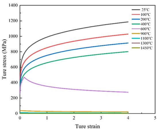 The heat transfer, thermal expansion, and contraction of materials during the welding process are governed by their physical properties, such as thermal conductivity, thermal expansion coefficient, and specific heat capacity. These properties are particularly critical in laser welding, where localized heat input creates steep thermal gradients. Because these parameters vary significantly with temperature, obtaining the thermophysical properties of materials across a wide temperature range is essential for accurately simulating the dynamic heat transfer, expansion, and contraction behavior during the welding process. The thermophysical properties of 430 ferritic stainless steel used in this study, including temperature-dependent thermal conductivity, thermal expansion coefficient, and specific heat capacity, are presented in Figure 3 and Table 2.