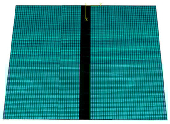 To address the complex thermal and mechanical behaviors in the welding process, this study employs progressive meshing, as shown in Figure 4, with all cell types designated as C3D8RT elements, which are suitable for coupled temperature-displacement analysis. The weld zone employs a fine mesh with a minimum size of 0.02 mm × 0.05 mm × 0.1 mm, enabling precise resolution of steep thermal gradients and localized deformations, thereby ensuring computational accuracy. In contrast, regions farther from the weld zone use progressively larger mesh sizes to reduce the total number of elements, optimizing computational efficiency without compromising accuracy in critical areas. The stress exerted by the clamp on the weldment is modeled by fully constraining the degrees of freedom in the clamped region, effectively fixing it during the simulation.