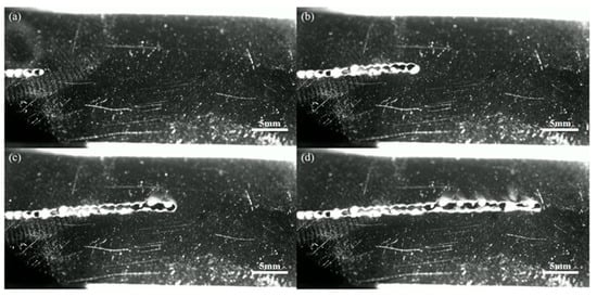 Figure 22. Surface morphology of welded seam after clamp optimization: (a) t = 0.1 s; (b) t = 0.2 s; (c) t = 0.3 s; (d) t = 0.4 s.