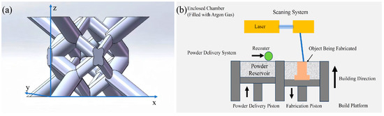Recently, additive manufacturing (AM) has presented an opportunity to fabricate metal foams with complex structures. This process enables precise control over hierarchical internal structures, enhancing material utilization and lightweight performance critical for aerospace, biomedical, and automotive applications. However, AM is constrained by limited material options, slower production rates, and higher costs compared to conventional methods. Despite these challenges, AM remains essential for applications requiring intricate geometries unattainable via traditional manufacturing [12,13,14]. Among these, selective laser melting (SLM) technology enables the rapid production of precise, small, and/or medium-sized parts, thereby rendering it a more efficient and high-quality approach for preparing foam structures [15,16].