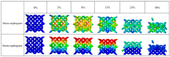 Figure 15. Distribution of stress and strain as well as deformation rule of 3# specimen during quasi-static compression.