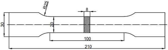 The material used in this study is 35CrMoA steel with the following chemical composition (wt. %): C 0.357, Cr 1.025, Mo 0.188, Si 0.212, Mn 0.688, P 0.015, S 0.0048, and Fe as the balance. The dimensions of the specimens are shown in Figure 1. Initially, the specimens were stretched to a predefined strain at room temperature using a universal testing machine with a controlled strain rate of 2.0 mm/min. A total of six groups of specimens were prepared, each containing two specimens in each group. Group A0 represented the original specimen used as a reference while group A5 was stretched until it fractured to determine the maximum elongation. Groups A1 to A4 were stretched to 20%, 40%,…, 80% of the maximum elongation, respectively, resulting in the corresponding strain values of 0.4%, 3.5%, 6.8% and 11.2%, respectively.
