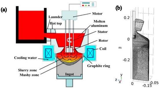- Lebon, G.B.; Li, H.-T.; Patel, J.B.; Assadi, H.; Fan, Z. Numerical modelling of melt-conditioned direct-chill casting. Appl. Math. Model. 2020, 77, 1310–1330. [Google Scholar] [CrossRef]
