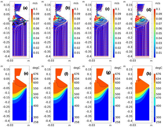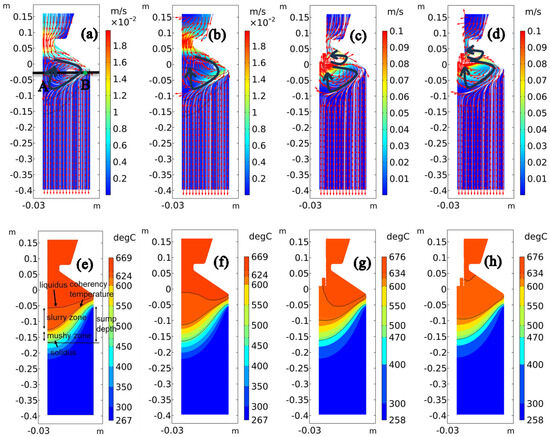 5.1. The Effect of Combined Fields on the Melt Flow and Temperature Field During DC Casting