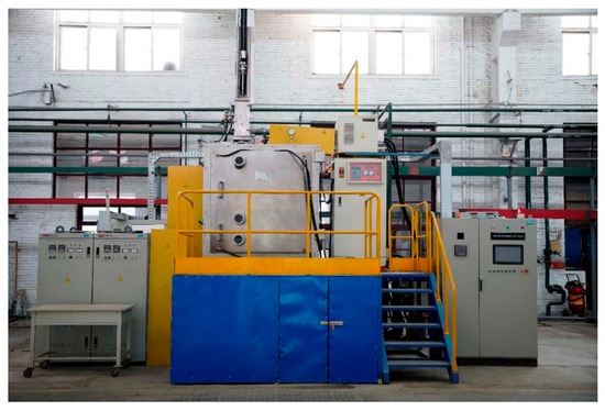 The directional solidification furnace for TiAl alloy casting, as shown in Figure 15, consists of a vacuum system, resistance heating system, inductive drip-feeding system, and directional withdrawal system. The Ga–In–Sn alloy coolant, which remains liquid at room temperature, is utilized for cooling. This apparatus is capable of producing directionally solidified TiAl alloys via both the standard Bridgman method and a modified Bridgman method integrated with drip-feeding technology. The system achieves an ultimate vacuum level exceeding 10−3 Pa and sustains a maximum operating temperature of 1700 °C under prolonged service conditions.