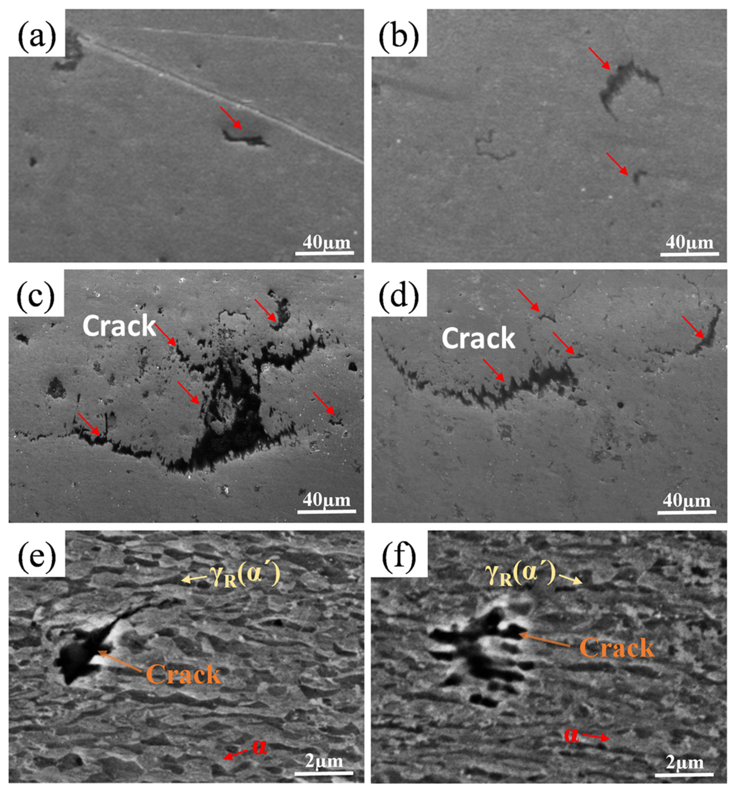 - Upon tensile loading, H-assisted microcracks mainly formed within γ(α′) and propagated along the γ(α′) grain boundaries, causing the intergranular cracking and premature fracture.