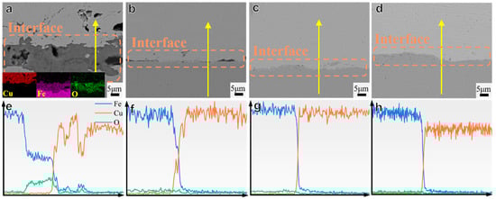 - Liu, P.; Wang, X.; Chen, D.; Long, M.; Duan, H. Interface structure characterization and elements doping on interface bonding strength and tensile failure mechanism of NiCo coating/Cu matrix. Results. Phys. 2021, 30, 104883. [Google Scholar] [CrossRef]