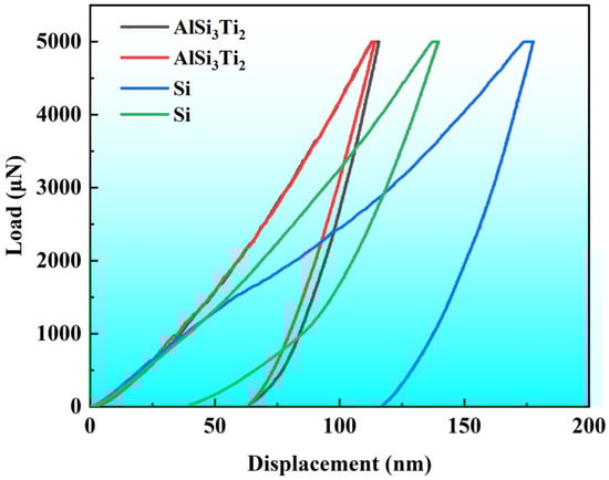 Load depth curves of AlSi3Ti2 versus Si phase in Al12Si–7TiO2 composites.