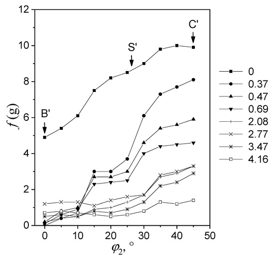 3.2. The Rotation Paths of the B’, S’, and C’ Orientations