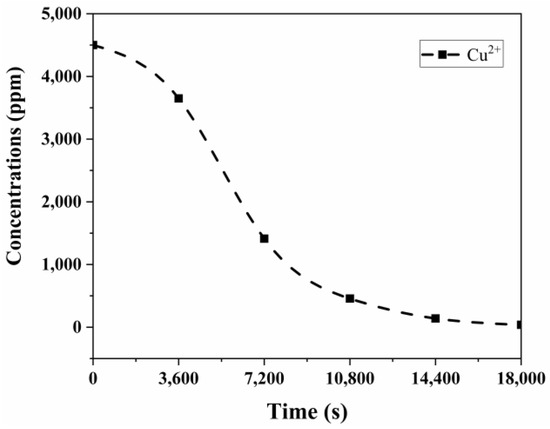 Cu2+ change in solution with time at −0.5 V vs. Ag/AgCl.