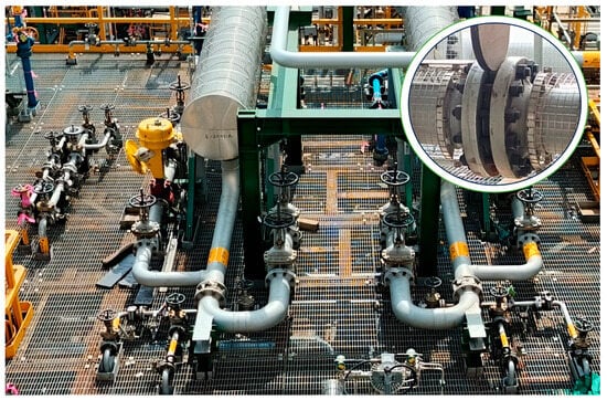 These flanges consisted of a circular disk with holes around the perimeter, allowing multiple bolts to fasten the two flanged components together. This design enhances the load-bearing capacity, simplifies the construction and replacement processes, and provides flexibility for easier disassembly and maintenance. This is particularly important in environments such as petrochemical plants, where regular inspection and component replacement are necessary. As shown in Figure 1, these plants contain numerous multi-bolted flanges that require careful attention.