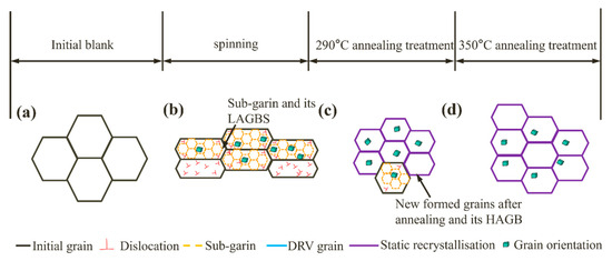 - Zhang, Y.; Wang, F.; Dong, J.; Jin, L.; Liu, C.; Ding, W. Grain refinement and orientation of AZ31B magnesium alloy in hot flow forming under different thickness reductions. J. Mater. Sci. Technol. 2018, 34, 1091–1102. [Google Scholar] [CrossRef]