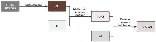 Process diagram for manufacturing TiC-CF/Al composite materials.