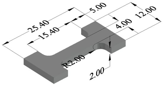 The size of the tensile specimen is shown in Figure 2. The universal testing machine (MTS E45, MTS Corporation, Eden Prairie, MN, USA) is used to test the tensile strength of the specimen at room temperature, with a crosshead separation rate of 1 mm/min. Finally, the tensile fracture morphology of the sample was observed and analyzed using a scanning electron microscope (GeminiSEM300, Carl Zeiss GmbH, Oberkochen, Germany). The mechanical properties of TiC CF/Al composites with different thicknesses were studied by tensile testing at room temperature.
