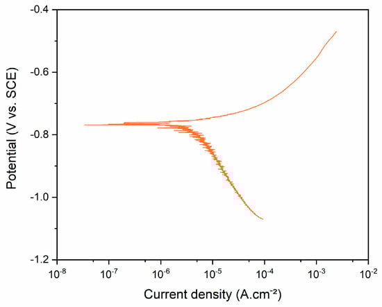 According to Wang et al. [27], corrosion occurs based on the potential (Ecorr) in a thermodynamic system, where a higher potential corresponds to better corrosion resistance, while the corrosion rate is kinetically assessed by the current density (Icorr); the lower the current density, the lower the rate. Generally, a lower potential indicates a higher corrosion current density [26].