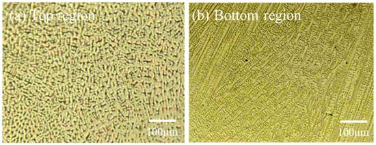 - Microstructural analyses indicate that ultrasonic processing leads to significant refinement of dendritic ferrite in 0.35 wt.% nitrogen wires and a substantial reduction in both the content and coarseness of skeletal ferrite in 0.70 wt.% nitrogen wires. These microstructural changes reflect improved phase balance and enhanced austenite stability, which are attributed to increased nitrogen retention. By improving nitrogen retention, ultrasonic assistance modifies the solidification mode of high-nitrogen steel, which promotes interstitial solid solution strengthening, suppresses ferrite formation, and facilitates the development of finer, more homogeneous microstructures.