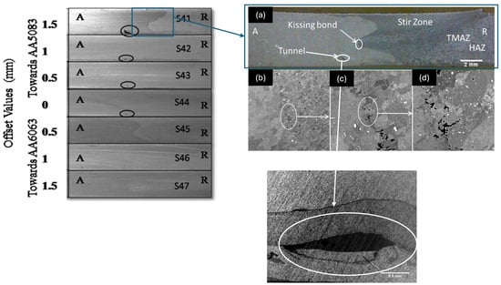 - Khan, N.Z.; Siddiquee, A.N.; Khan, Z.A.; Shihab, S.K. Investigations on tunneling and kissing bond defects in FSW joints for dissimilar aluminum alloys. J. Alloy. Compd. 2015, 648, 360–367. [Google Scholar] [CrossRef]