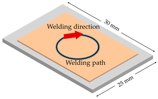 Schematic illustration of welding samples, where the black line represents the welding path (circle diameter 12 mm) and the welding direction has been indicated.