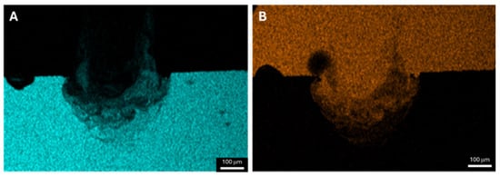 EDS maps of sample 2 showing the Al (A) and Cu (B) elements.