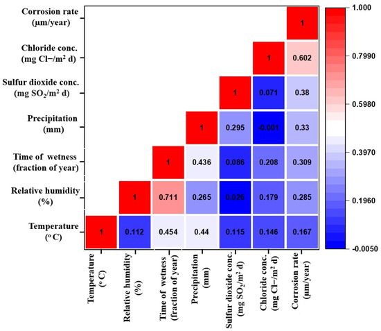 Figure 3. Heatmap of correlation coefficients between environmental variables and corrosion rate.