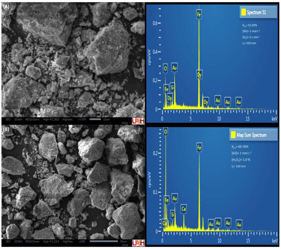 Energy−dispersive spectra of MM residual solids, O3 (A), and H2O2 (B).