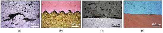 Micrographs of the weld interfaces of (a) aluminum–aluminum, (b) copper–brass, (c) aluminum–steel, (d) aluminum–copper. Reprinted with permission from ref. [11]. 2011. Faes K.
