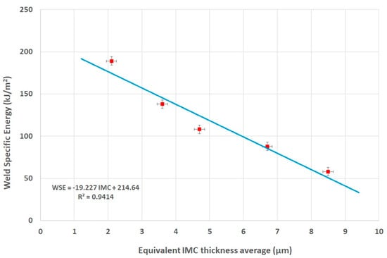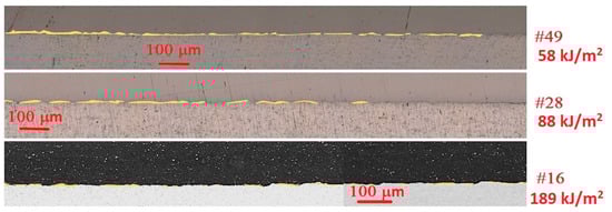 When a low-energy discharge is realized for the welding operation, a thin phase of intermetallic is generated. When the energy level of the discharge is increased, the thickness of the intermetallic phase increases, resulting in the generation of cracks, voids, and pores. Psyk [21] presented results in which the existence of micro fractures was confirmed if the selected discharge energy level was too high.