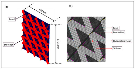 (a) Isometric view of the panel; (b) mesh and body connection.