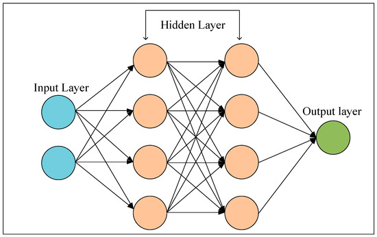 An artificial neural network (ANN) is a subset of machine learning (ML) that functions by mimicking the working mechanism of a brain [42]. An ANN consists of one input layer, one output layer, and multiple hidden layers—depending on the requirement. These layers are interconnected nodes, known as neurons, linked by weighted connections or synapses to recognize the data pattern, train or learn from it, and make decisions [43]. The input layer takes in data; the hidden layers (which can be multiple) utilize the input data and process them employing weights, biases, and activation functions; and the output layer predicts or classifies the results depending on the type of task. For their multilayered decision-making architecture, in most cases, an ANN outperforms classical models [44,45]. Figure 4 shows the general architecture of an ANN.