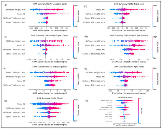 - SHAP analysis reveals that stiffener height and mass are the most influential features affecting critical buckling load, highlighting the importance of geometric optimization for enhancing panel stability.