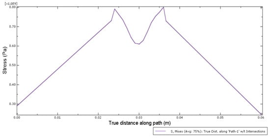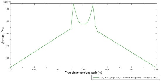 By using the Goldak’s heat input, the transverse residual stresses in a point at 8.35 s from the welding line are shown in Figure 17. The stresses curve raises from base metal to attain a maximum value 1.1 GPa in the (heat-affected zone) HAZ zone; the two maximum stresses distance is around 0.007 (m); after that in the FZ (fusion zone), the stresses curve reduces to 0.78 GPa.