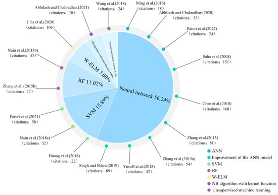 Citation distribution of different machine-learning techniques (neural networks, SVM, RF, and other algorithms) in the field of WEDM process optimization, based on the literature statistics from 2008 to 2024. (Note: The citation counts in the figure are weighted by calculating the logarithm of the original values with base 10) (Adapted from Refs. [,,,,,,,,,,,,,,,,]).