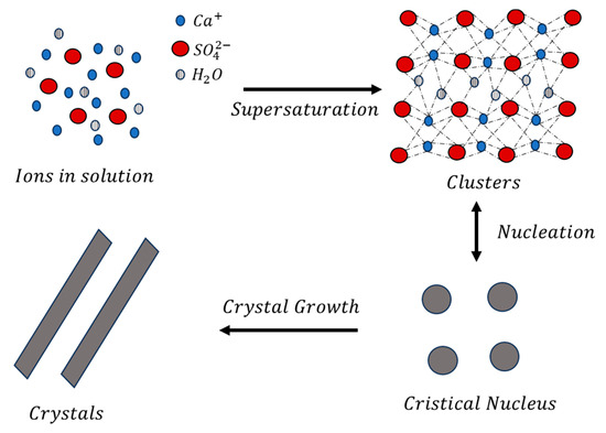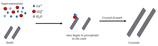 - Abdel-Aal, E.A.; Rashad, M.M.; El-Shall, H. Crystallization of calcium sulfate dihydrate at different supersaturation ratios and different free sulfate concentrations. Cryst. Res. Technol. 2004, 39, 313–321. [Google Scholar] [CrossRef]