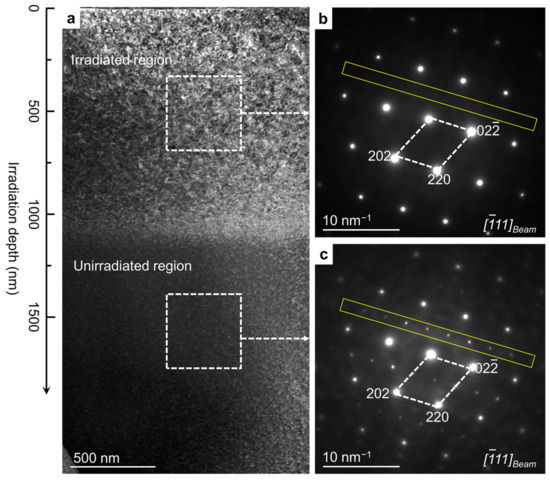 - Jin, K.; Lu, C.; Wang, L.M.; Qu, J.; Weber, W.J.; Zhang, Y.; Bei, H. Effects of compositional complexity on the ion-irradiation induced swelling and hardening in Ni-containing equiatomic alloys. Scr. Mater. 2016, 119, 65–70. [Google Scholar] [CrossRef]