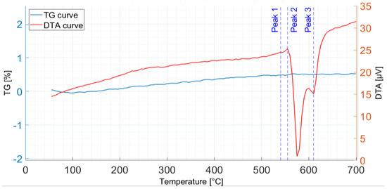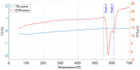 3.3. Simultaneous Thermogravimetric and Differential Thermal Analysis