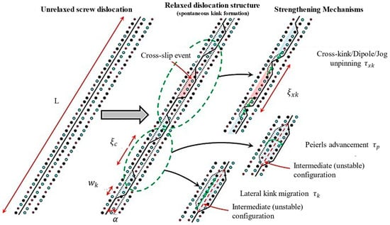 74. Zhou, X.R.; He, S.C.; Marian, J. Cross-kinks control screw dislocation strength in equiatomic bcc refractory alloys. Acta Mater. 2021, 211, 116875. [Google Scholar] [CrossRef]