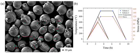 (a) Microscopic morphology of the powder; (b) HIP experimental process profile.