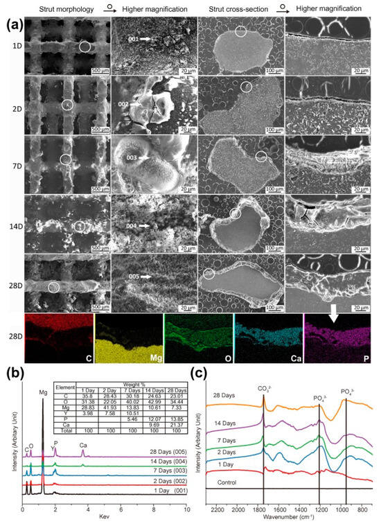 Magnesium alloys are characterized by low density, elastic modulus close to bone tissue, and relatively rapid degradation capability (3–6 months) []. The main corrosion product is magnesium hydroxide, which gradually transforms into water-soluble compounds and is safely excreted from the body. Magnesium is an essential microelement involved in more than 300 biochemical reactions in the body, ensuring a favorable biological response [].