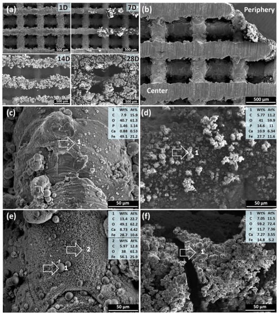 Degradation rate management is a key task. For this purpose, alloying (to increase corrosion resistance) [], surface modification (creation of protective coatings) [], porosity management (regulation of surface area) [], and microstructure regulation (phase composition, grain size through SLM parameters) [] are used. Combining these approaches allows creating implants with predetermined degradation rates.