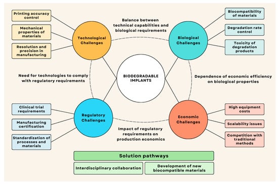 Despite significant progress in developing biodegradable alloys and their additive manufacturing technologies, several unresolved problems remain that require further research. The main challenges include control of degradation rate [], balance of mechanical properties, technological aspects of working with reactive metals [], and certification issues for clinical application.