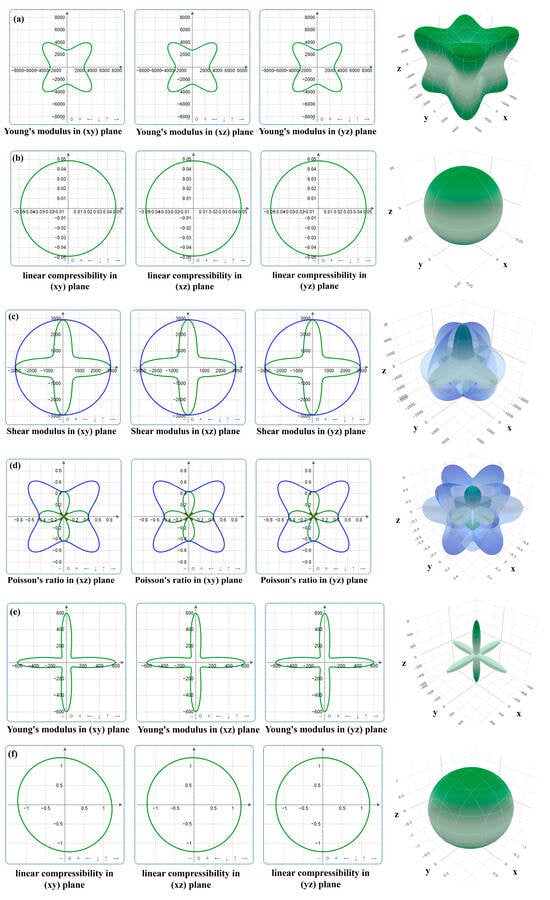 2D and 3D anisotropy distributions of (a–d) fcc-Fe and (e–h) NbN elastic modulus.