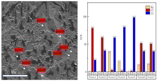 2.4. Microstructure Observation and EDS Analysis of Zn-19Al-6Mg Alloy