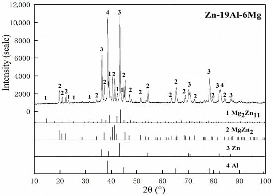 - The solidification microstructure of the Zn-19Al-6Mg alloy consists of an β-Al phase, α-Al phase, MgZn2 phase, and Mg2Zn11 phase.