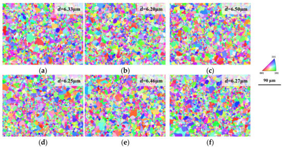 - Observations from EBSD microstructural analysis revealed that within this range of cooling rates, no significant recrystallization phenomena were detected. Compared to the original grain structure, the maximum difference in grain size for cooled specimens was found to be 2.78%. Dislocation structures remained relatively unchanged post heat treatment; thus, strengthening due to dislocations primarily arises from their accumulation during deformation at room temperature.