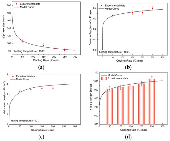 - A predictive model for organizational performance based on heat treatment cooling rate has been established. The prediction error concerning microstructural features such as precipitation phase and dislocation density does not exceed 2.97%, while the prediction error for yield strength is limited to 1.76%, demonstrating good agreement with experimental results.