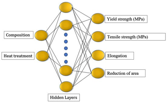 - Ishtiaq, M.; Tiwari, S.; Nagamani, M.; Kang, S.-G.; Reddy, N.G. Data-Driven ANN-Based Predictive Modeling of Mechanical Properties of 5Cr-0.5Mo Steel: Impact of Composition and Service Temperature. Crystals 2025, 15, 213. [Google Scholar] [CrossRef]